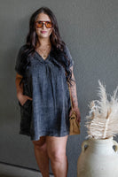 ARIANE DOUBLE GAUZE SHIRT DRESS (ASH BLACK)