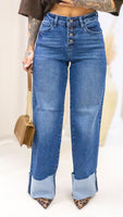 Slouchy Wide Leg Jeans with Cuffed Hem — Risen