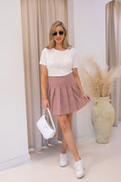 NEW DELILAH PLEATED CORDUROY MINI SKIRT (BLUSH)