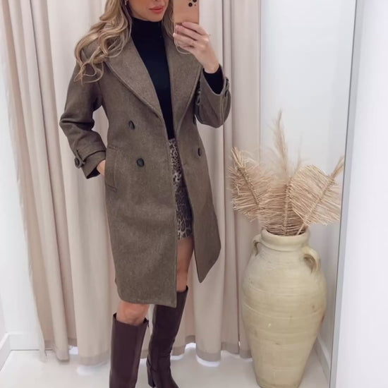 ANGELINA DOUBLE BREASTED TIE WRAP COAT (BROWN)