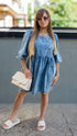 This lightweight denim mini captures sweet, modern charm—featuring 3/4 sleeves, a relaxed babydoll silhouette, a classic regular neckline, and a keyhole back for subtle detail. Practical patch pockets add function, while the soft denim fabric keeps it comfortable and stylish.
