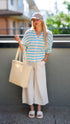 The “Mae” Crochet T‑Shirt delivers breezy texture and refined ease. Perfect for beach days or brunch dates, it’s your go‑to layering knit—especially when paired with linen pants for peak summer 2025 style.