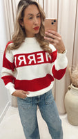 MERRY CHRISTMAS KNIT STRIPE SWEATER (RED)