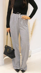 Effortless comfort meets classic style in these loose-fitting striped trousers. Crafted from soft organic cotton jersey with a hint of stretch, they feature a high waist with a drawstring fastening for the perfect fit. Ideal for relaxed days at home or casual weekend outings.