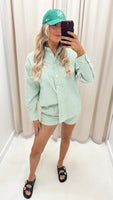 This is a set! Crafted in soft yet structured woven fabric, this matching top and shorts combo brings clean, coordinated style with a relaxed, fashion-forward edge. It’s the everyday set that looks thoughtful even when you didn’t try too hard.